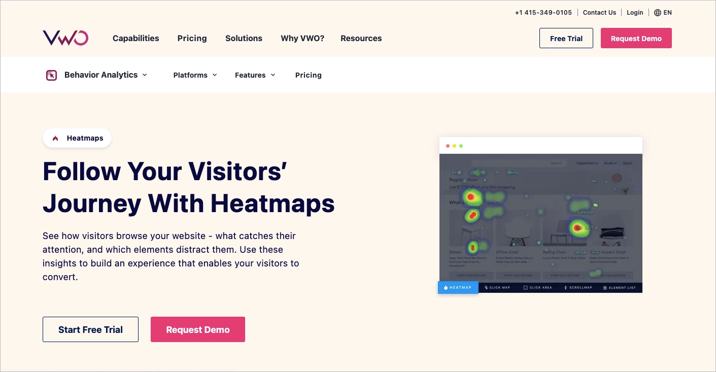 Najlepszym oprogramowaniem do tworzenia map cieplnych do analizy danych jest VWO (Visual Website Optimizer). Narzędzie to oferuje szeroki wachlarz funkcji, które zapewniają marketerom i ekspertom optymalizacji konwersji gruntowne zrozumienie zachowań użytkowników. VWO zostało zaprojektowane tak, aby dostarczać praktycznych informacji, które pomagają zoptymalizować strony internetowe i zwiększyć zaangażowanie użytkowników.