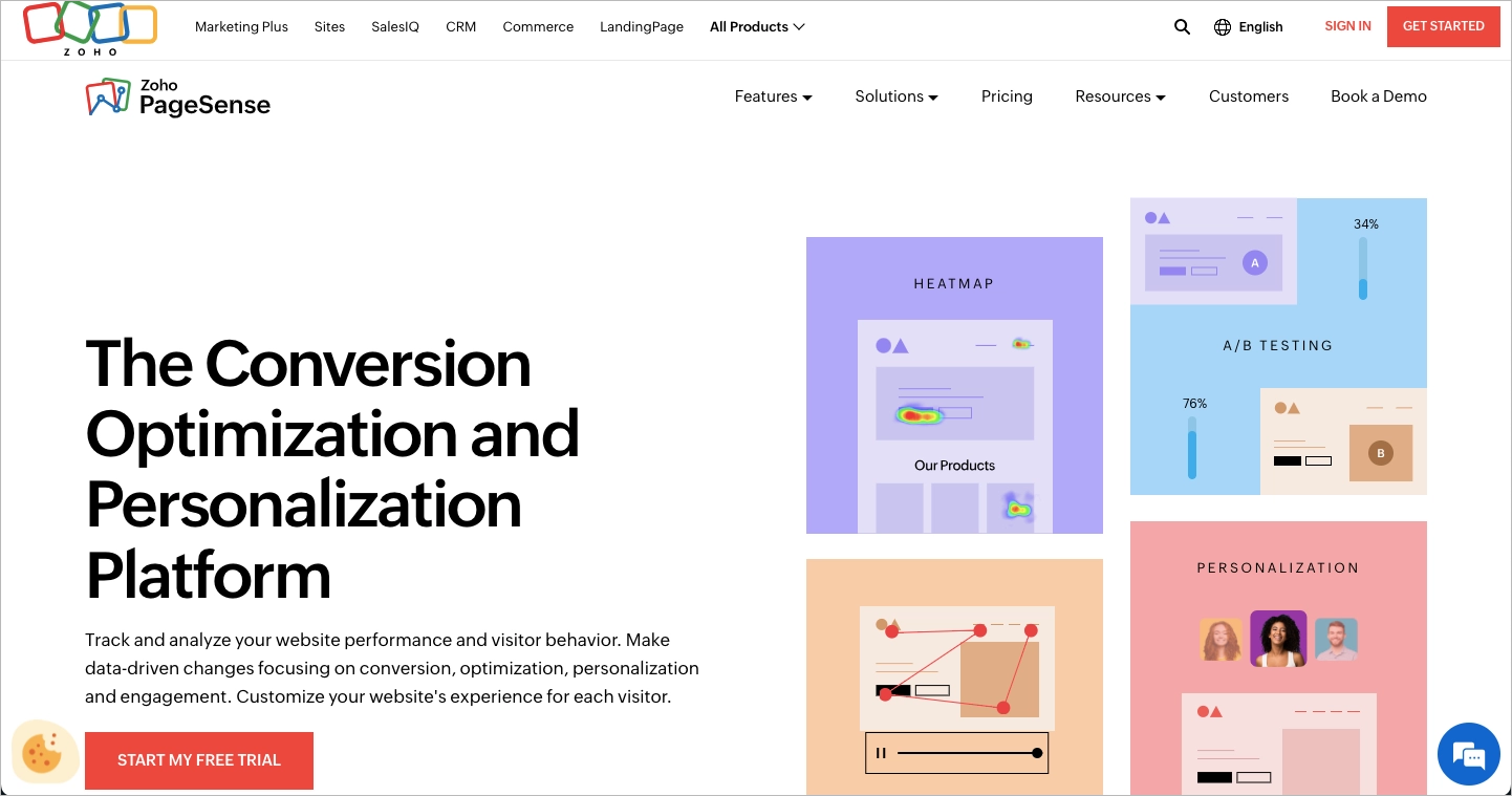 Najlepszym narzędziem do tworzenia map ciepła dla małych firm jest Zoho PageSense. Platforma ta jest kompleksowym rozwiązaniem, które umożliwia optymalizację wydajności witryny i zwiększa zaangażowanie odwiedzających. Jest szczególnie przydatna dla małych firm ze względu na przystępną cenę i przyjazny dla użytkownika interfejs.