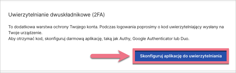 2. Wybierz opcję Skonfiguruj aplikację do uwierzytelniania.