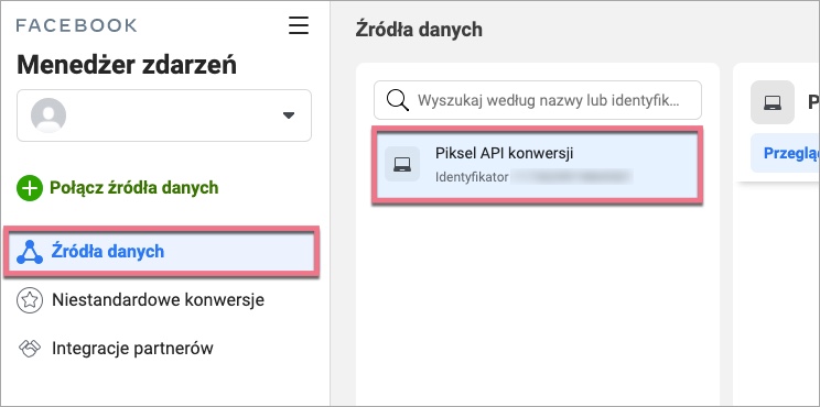 6. Twój nowy piksel jest dostępny w zakładce Źródła danych. W kolejnym kroku musisz aktywować integrację w Zapierze.