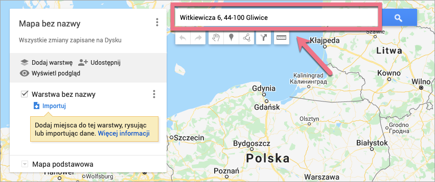 1. Otwórz w przeglądarce aplikację Google My Maps. Przejdź do następnego kroku i kliknij czerwony przycisk Utwórz nową mapę.