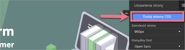 3. Przejdź do Ustawień strony i kliknij Dodaj własny CSS.