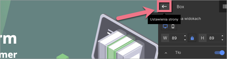 W trakcie edycji wrócisz do Ustawień strony, klikając na strzałkę: