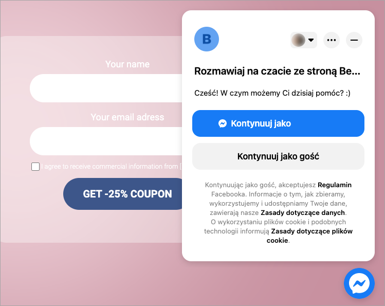Facebook oferuje darmową wtyczkę do czatu Messenger. Od teraz Twoi obecni oraz potencjalni klienci będą mogli kontaktować się z Tobą bez względu na to, gdzie przeglądają Twoją ofertę.