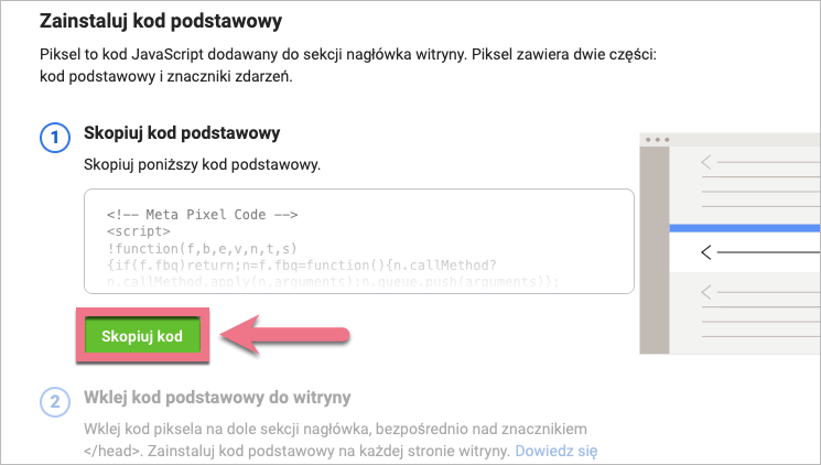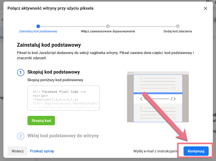 2. Skopiuj kod podstawowy piksela.