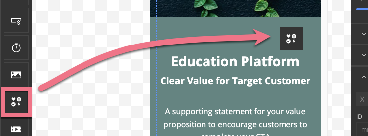 3. Dodaj ikonę do tej sekcji, przeciągając widget ikony w wybrane miejsce.