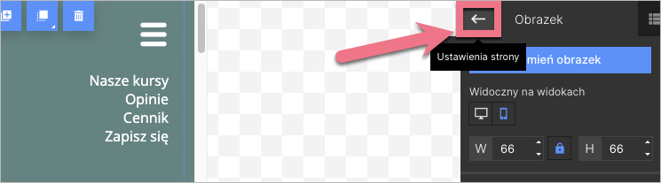 W trakcie edycji do Ustawień strony wrócisz, klikając na strzałkę: