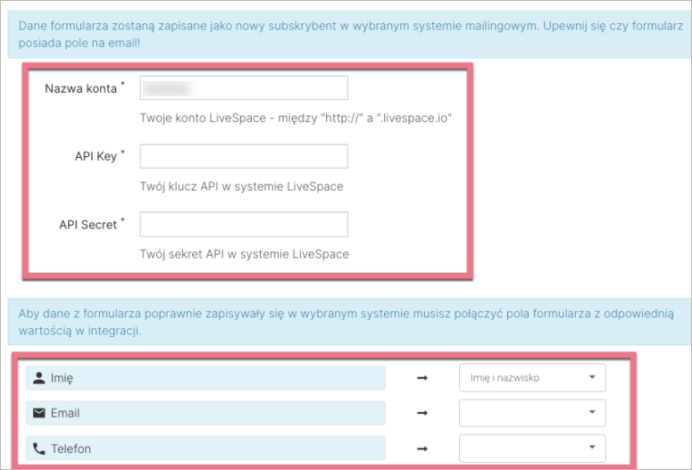 Wypełnij testowo formularz i sprawdź, czy dane są prawidłowo przesyłane do Twojego konta w LiveSpace.