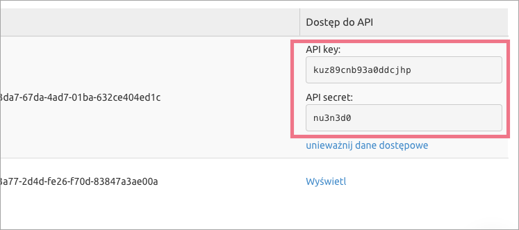 4. Podaj wymagane dane: nazwę konta, API key i API secret. Następnie połącz pola formularza z wartościami w integracji.