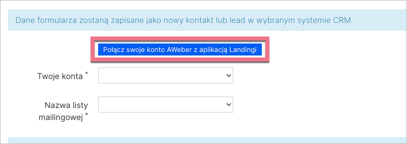 3. Kliknij w przycisk Połącz swoje konto AWeber z aplikacją Landingi.