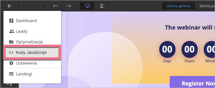 1. Zaloguj się na swoje konto w Landingi i przejdź do Dashboardu landing page’a.