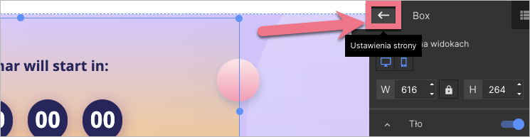 Podczas edycji do Ustawień strony wrócisz, klikając strzałkę:
