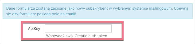 Jeżeli korzystasz z wersji Creatio 8.0.5 lub 8.0.6, skontaktuj się mailowo z supportem Creatio i poproś o utworzenie API key dla integracji z Landingi. Zespół Creatio zapyta Cię o Twój numer Customer ID – przygotuj go.