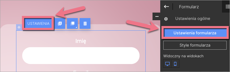 2. Kliknij w formularz i przejdź do jego Ustawień.