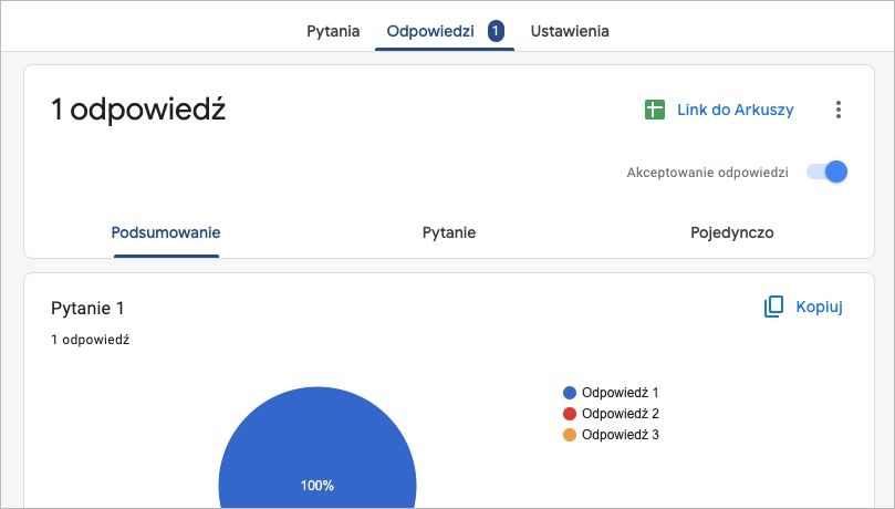 Wyniki zobaczysz zakładce Odpowiedzi.