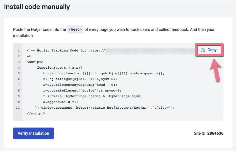 4. Wróć do platformy Hotjar. Kliknij Verify Installation (Zweryfikuj instalację).