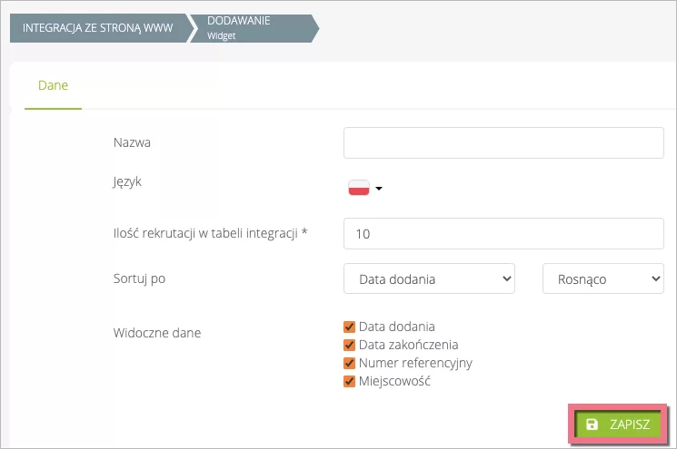 4. Skonfiguruj swój widget. Następnie kliknij Zapisz.