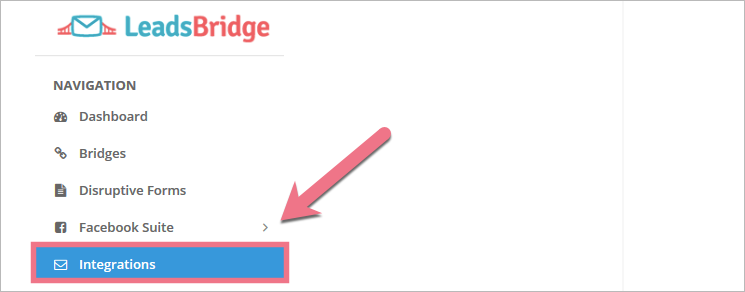 1. Zaloguj się do LeadsBridge i przejdź do sekcji Integrations z lewego menu.