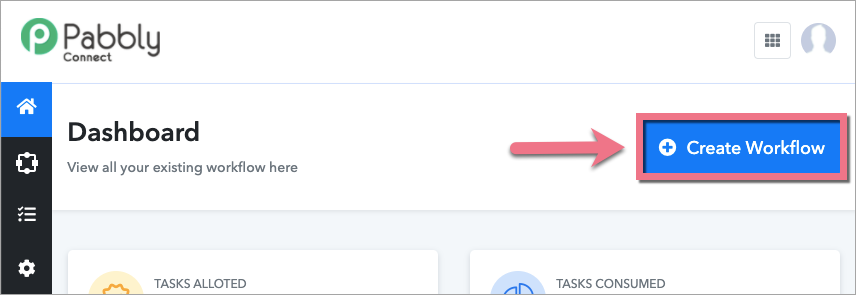 2. Przejdź do Dashboardu i kliknij Create Workflow.