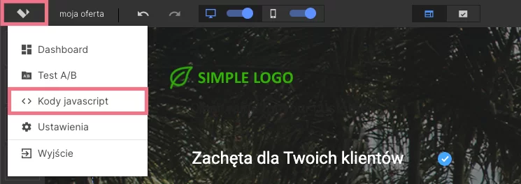 1. Przejdź do platformy Landingi i edytora wybranego landing page’a.