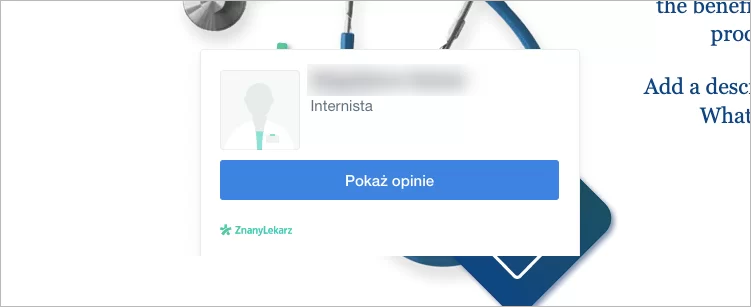 ZnanyLekarz to serwis umożliwiający pacjentom umawianie wizyt u lekarzy specjalistów, a także wystawianie im opinii. Z tej instrukcji dowiesz się, jak dodać widget ZnanyLekarz do swojego landing page’a w Landingi.