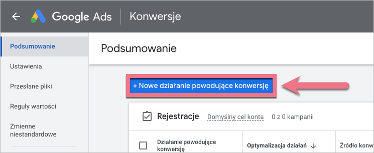Możesz sprawdzić status śledzenia konwersji i zarządzać działaniami konwersji tutaj lub po zalogowaniu się na swoje konto Google Ads w sekcji Narzędzia i Ustawienia > Pomiar skuteczności > Konwersje.