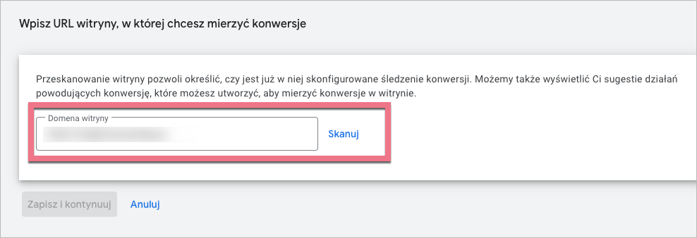 5. Wpisz swoją domenę i kliknij Skanuj.