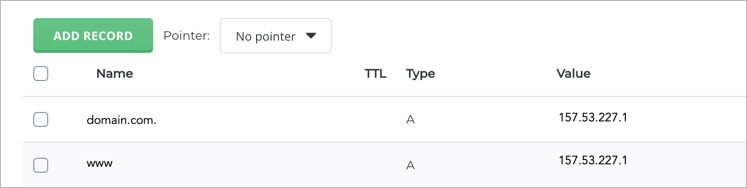 1. Dodaj dwa rekordy A: jeden dla domeny głównej i jeden dla subdomeny www. Jeśli masz już te rekordy, edytuj ich wartości za pomocą ikony ołówka (i zmień Typ, jeśli ustawiony na CNAME).