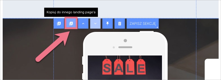 Sekcje możesz kopiować tylko pomiędzy landing page’ami.