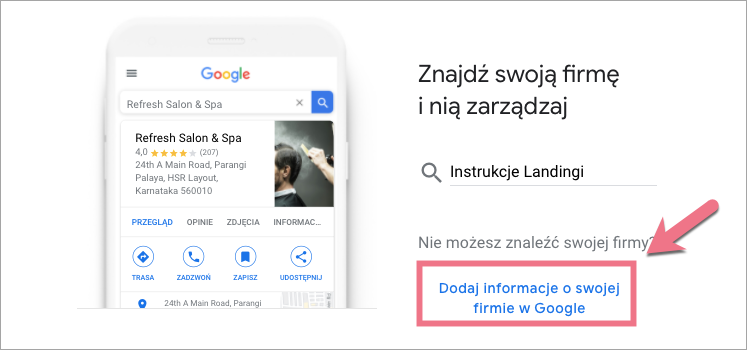 1. Znajdź nazwę swojej firmy w Google Moja Firma lub dodaj informacje o swojej firmie w Google.