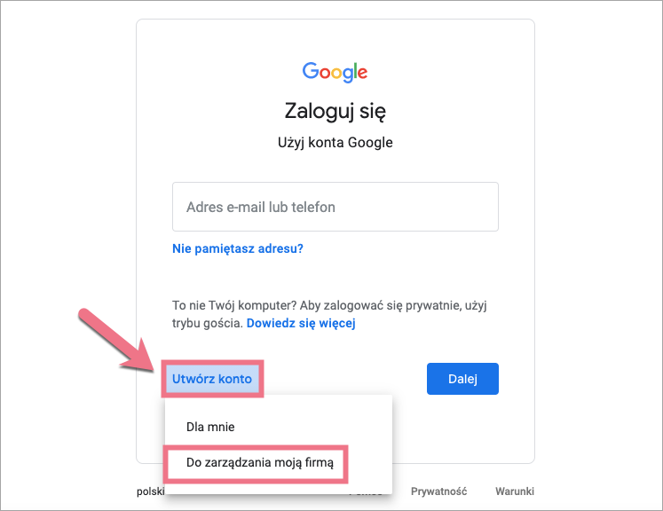 1. Aby zarejestrować się w usłudze Google Moja Firma, musisz mieć konto Google.