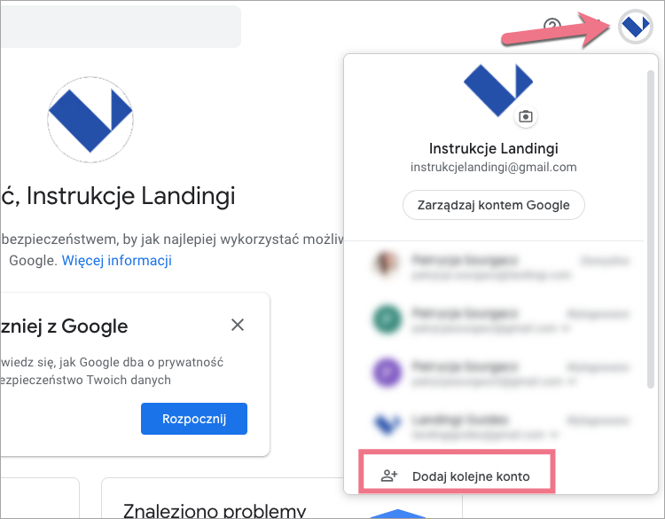 Jeśli masz tylko konto osobiste, przejdź do swojego konta Google, kliknij ikonę swojego konta i dodaj kolejne konto.