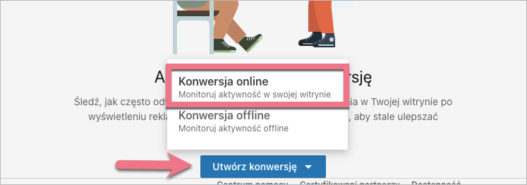 WSKAZÓWKA: Możesz także ustawić śledzenie konwersji przez Google Tag Managera. Aby to zrobić, przejdź do zakładki Użyj menedżera tagów i postępuj zgodnie z umieszczonymi tam instrukcjami. Więcej o ustawieniach tagów i reguł w GTM przeczytasz w naszych instrukcjach: śledzenie kliknięć przycisków, śledzenie zdarzeń niestandardowych, śledzenie testów A/B.