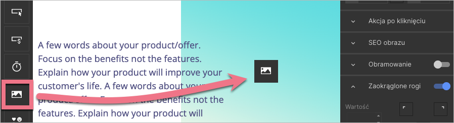 1. W edytorze dodaj widget Obrazek.