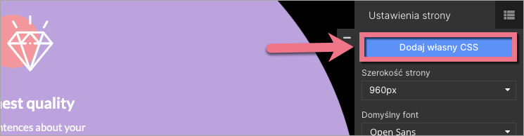 2. Przejdź do Ustawień strony i kliknij Dodaj własny CSS.