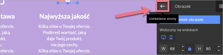 W trakcie edycji do Ustawień strony wrócisz, klikając na strzałkę: