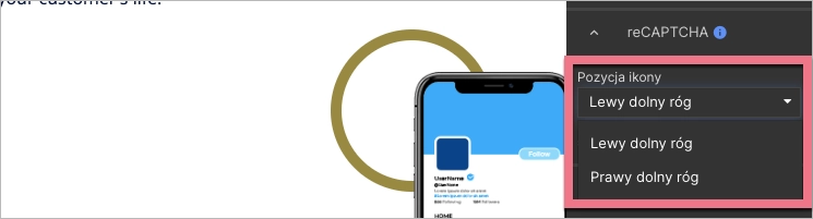 2. Wybierz pozycję ikony reCAPTCHA dla tego landing page’a.
