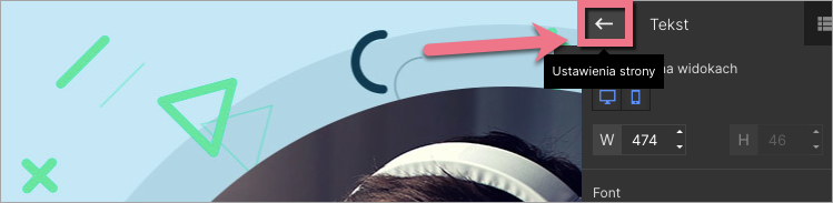 W trakcie edycji do Ustawień strony wrócisz, klikając strzałkę: