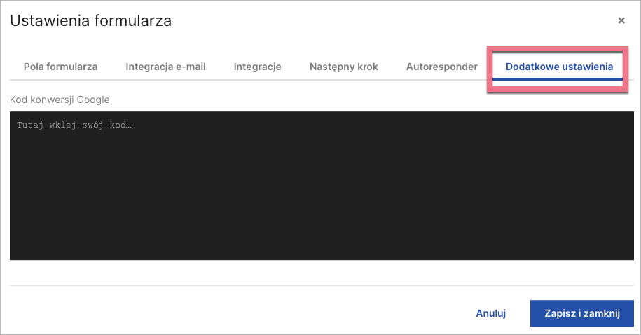 Ta opcja nie wyklucza połączenia formularza z jednym z narzędzi dostępnych w zakładce Integracje.