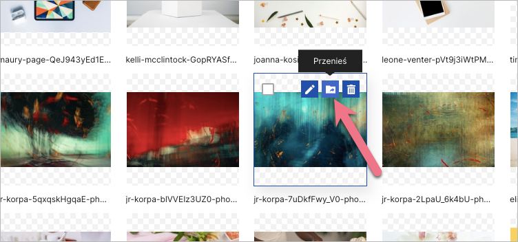 Pojedynczy obraz przeniesiesz do innego folderu, klikając w ikonę ze strzałką: