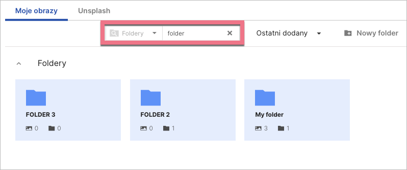 Możesz wyszukiwać foldery/subfoldery po ich nazwie – na poziomie folderu, w jakim aktualnie się znajdujesz.