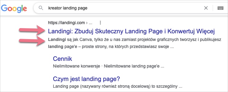 Meta tagi zawierają przydatne informacje na temat zawartości Twojego landing page’a oraz wspomagają działania marketingowe. Część meta tagów ma znaczący wpływ na to, jak prezentuje się Twoja strona w wynikach wyszukiwania.