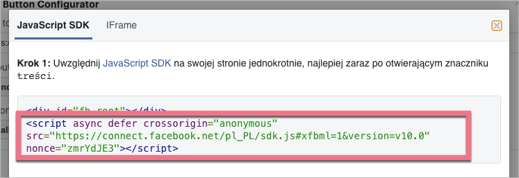 4. Skopiuj pierwszą część kodu z pominięciem tagów <div></div>. Nie zamykaj konfiguratora.