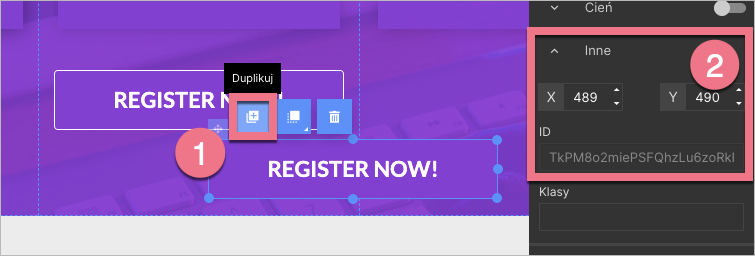 Z zakładki Inne skopiuj ID (2) zduplikowanego/nowego przycisku.
