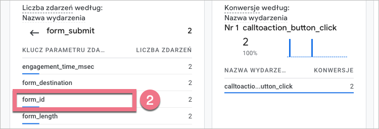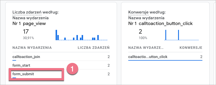 - W raporcie Liczba zdarzeń kliknij form_submit.
