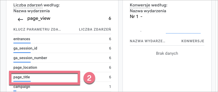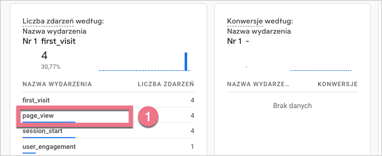- W raporcie Liczba zdarzeń kliknij page_view.