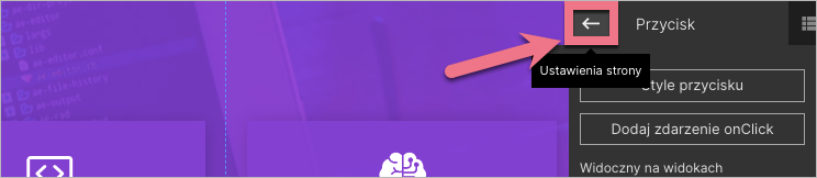 W trakcie edycji do Ustawień strony wrócisz, klikając na strzałkę: