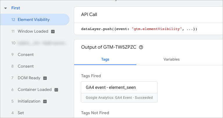 12b. Połącz swoją stronę z Tag Assistantem, a po jej otwarciu zeskroluj do miejsca, w którym znajduje się śledzony element.