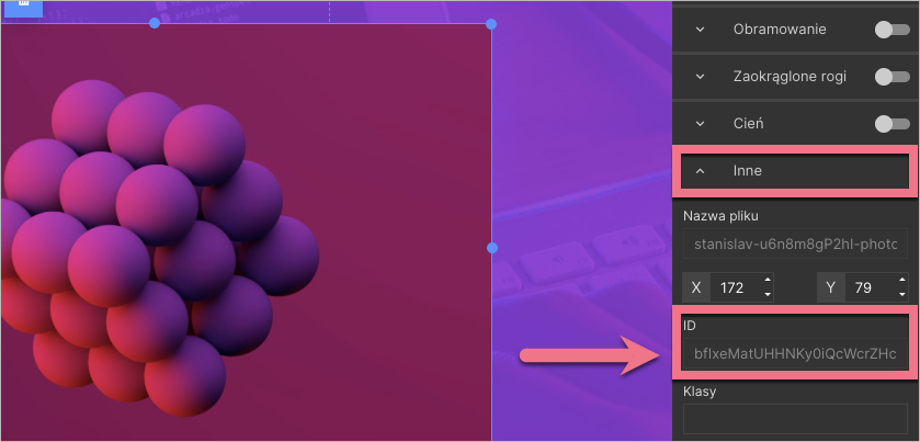 2. W panelu po prawej stronie rozwiń zakładkę Inne. Skopiuj numer z pola ID.
