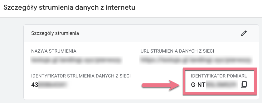 4. Zapisz skopiowany numer ID – użyjesz go podczas konfiguracji tagu w GTM.